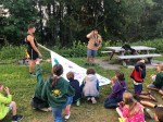 8.30: Tagwache im Schrattenblick. Ein Schock- alle Leitenden sind Pfadfinder! Nach einem nervenstärkenden Frühstück geht es ab in den Atelierbetrieb wo alle ihre eigenen Pfadfinder Utensilien herstellen durften. So konnten sie zum Beispiel ihre eigenen Pfadischleifen knüpfen oder es durften alle an einer gemeinsamen Scharfahne arbeiten. Am Nachmittag wurden diverse Spiele in der Natur gespielt und den Abend liessen wir am Lagerfeuer ausklingen mit viel Gesang, Tanz und einer Überraschung für die Leiter: Die Kinder legten ihre Kravatteb ab und warfen sie in das Feuer und wandelten sich zurück zu JuBlanern.