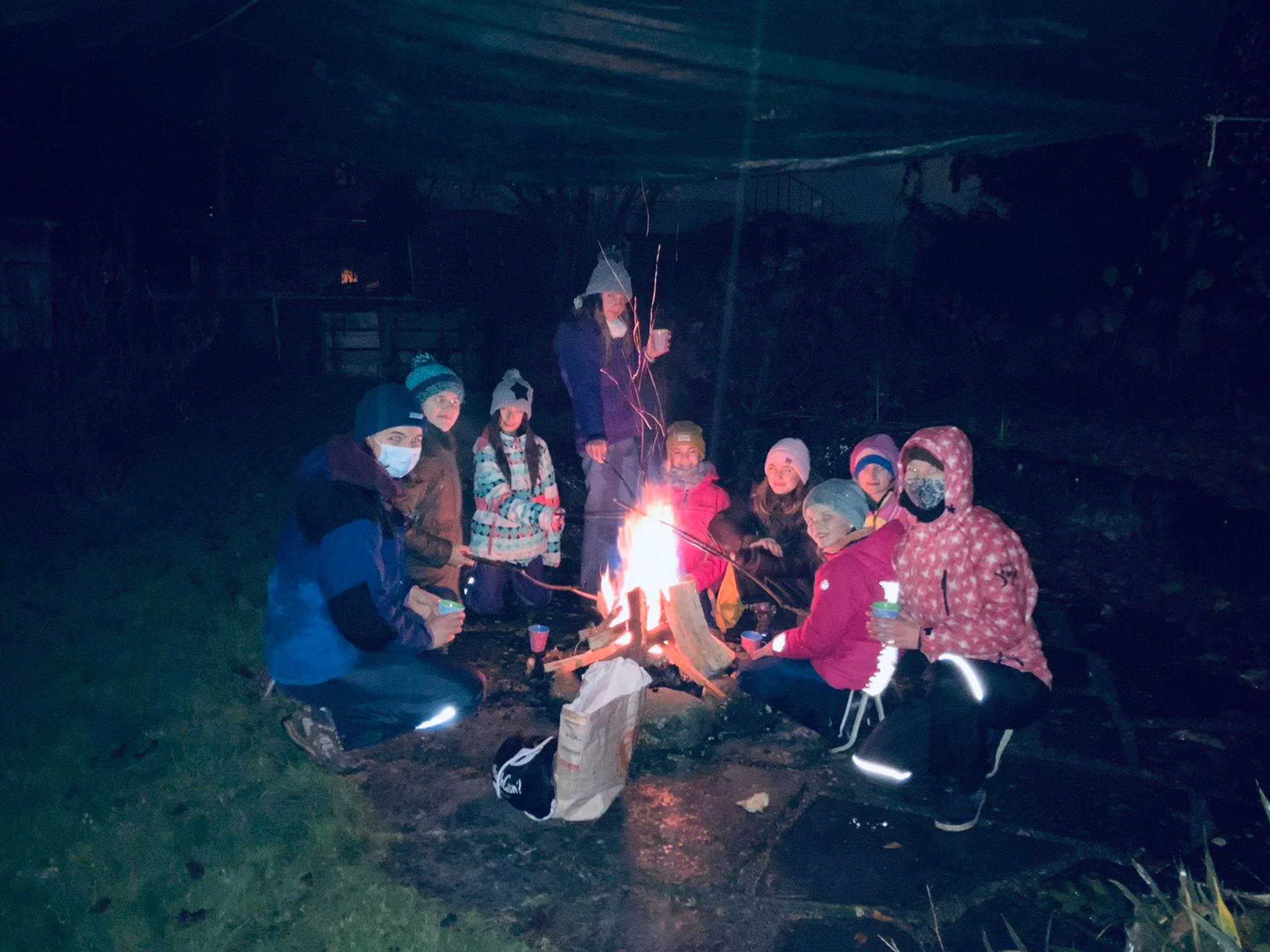 Trotz Regen war es ein sehr gemütlicher Abend: Wir wärmten uns am Feuer, brieten