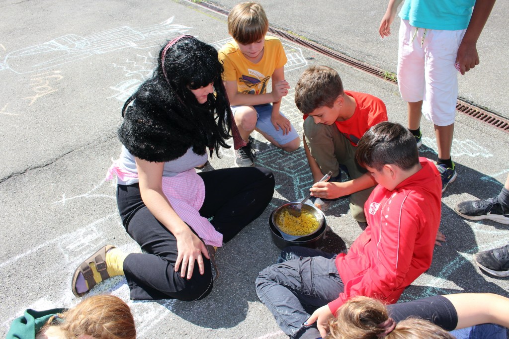 Heute erlebten wir ein entspannten Tag. Am Morgen begann er mit zwei Posten, welche die Kinder selbständig auswählen konnten. Beim einten Posten wurde eine Ringelblumensalbe hergestellt, welche für Wunden, Schnitte und weitere Vielseitige Beschwerden einsetzbar ist. Der andere Posten lud dazu ein, sein eigenes Sorgenfresserchen zu nähen.