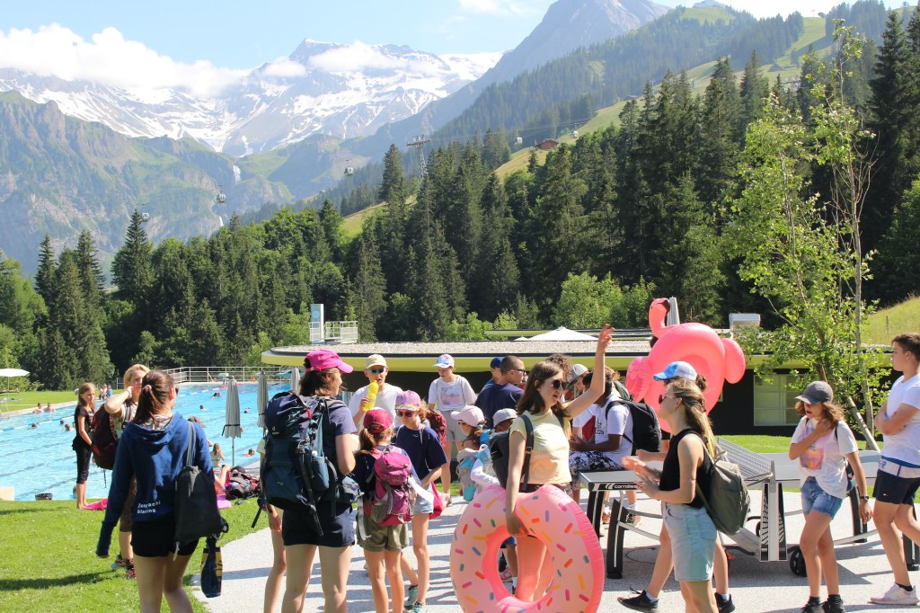Das Mittagessen war klassisch; Rice casimier. Mit dem gefüllten Bauch ging es in Richtung Badi! Mit dem lang ersehnten schönen Wetter war die Freude besonders gross. In der kleinen, aber sehenswerten Badi Gruebi hatten wir alle unseren Plausch im Wasser und auf dem Sprungturm.