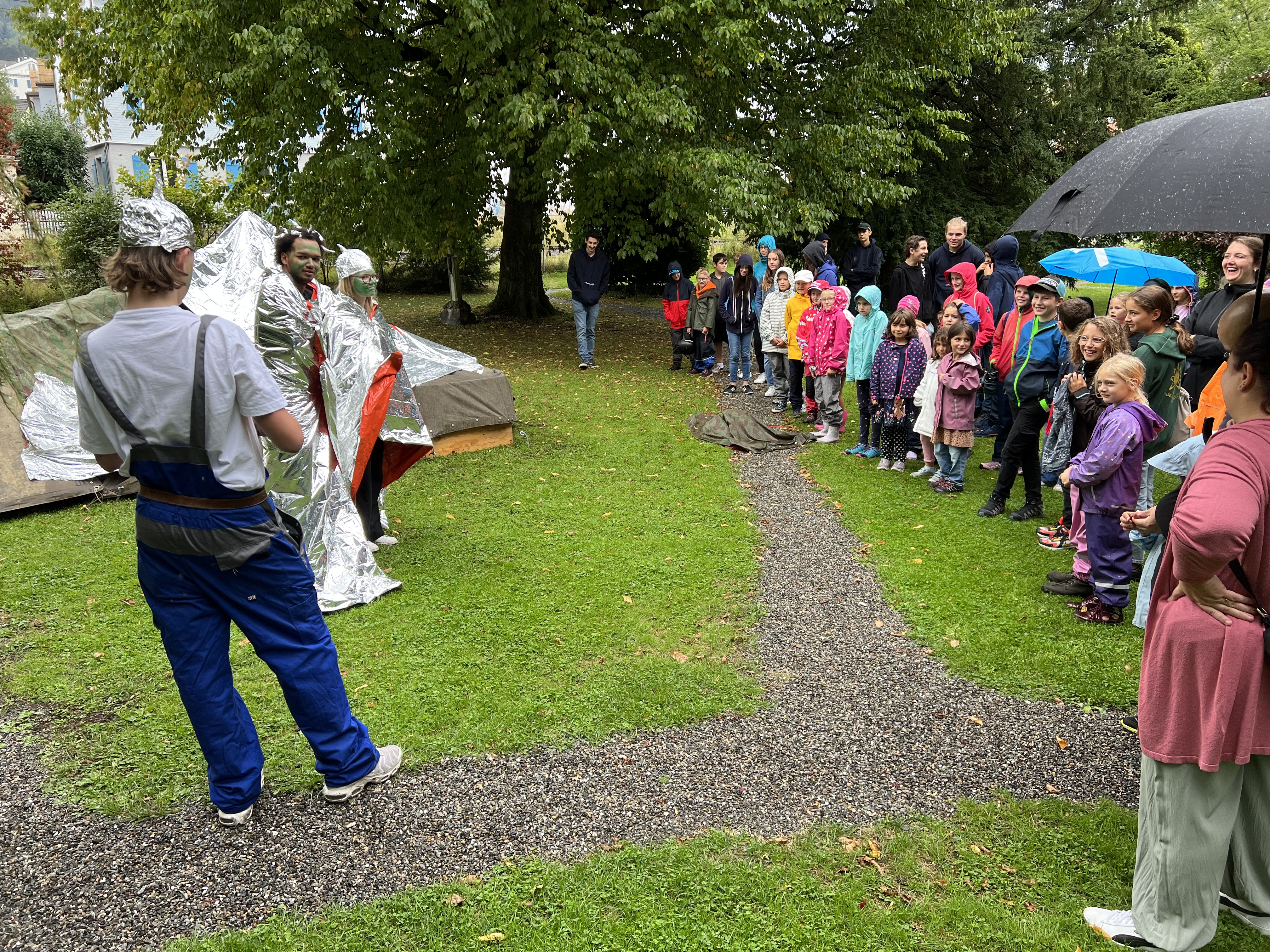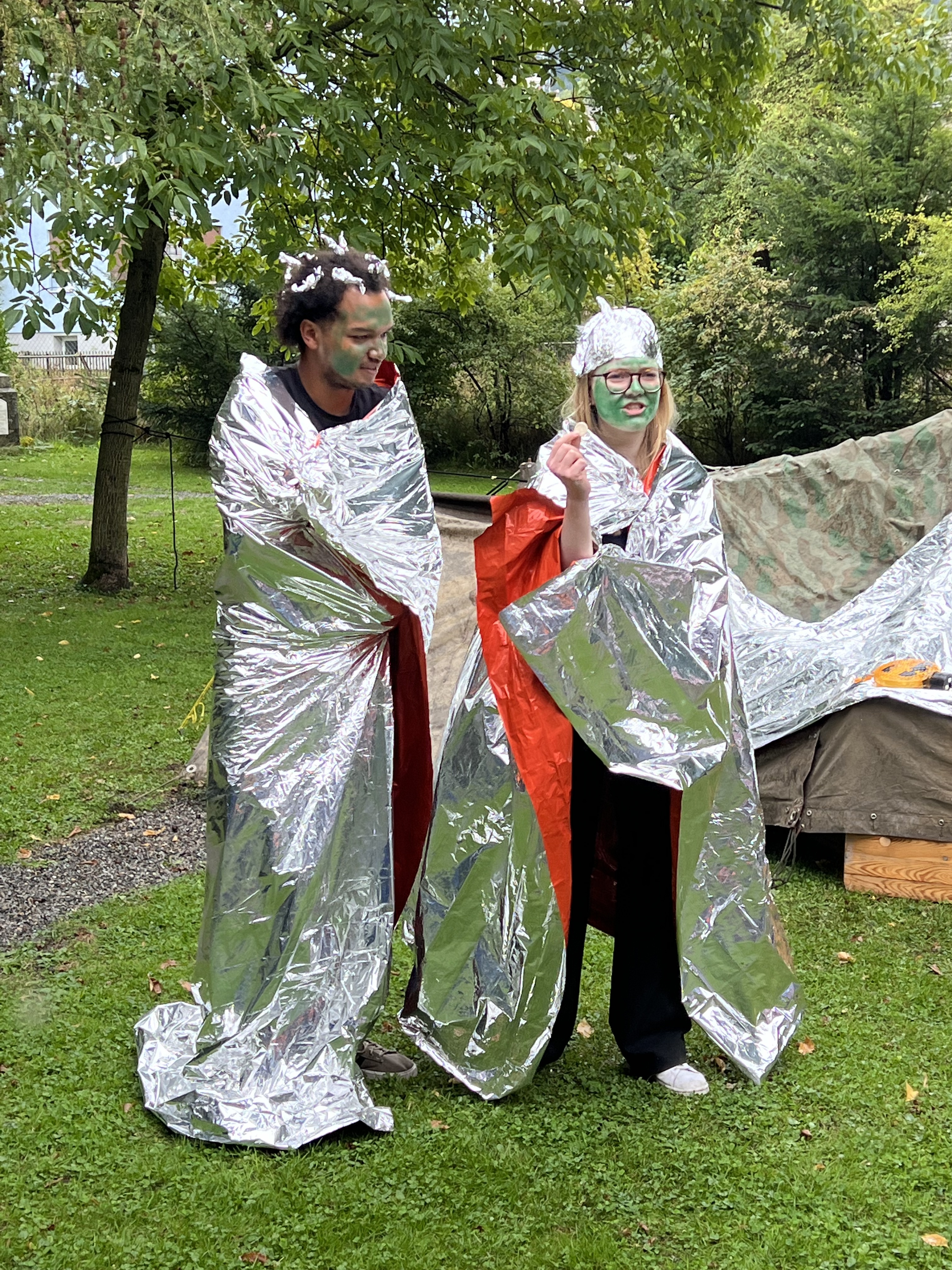 Am vergangenen Samstag fand wieder der Jubla-Tag unserer Schar in Rorschach statt. Der Nachmittag begann mit den drei Tschutschulanerinnen, die bei ihrer Durchreise vom Planeten Triloponis mit ihrem Ufo in Rorschach abgestürzt sind. Die Drei brauchten die Hilfe aller Jublanerinnen, um Geld zu verdienen, weil ihr eigener, fauler Mechaniker das Ufo nur gegen viel Geld repariert. Die Kinder und Jugendliche konnten an diversen Posten, unter anderem beim Riesen-Kartenturm, dem Ufo basteln und verzieren und dem Aliens abschiessen, viel Geld verdienen.