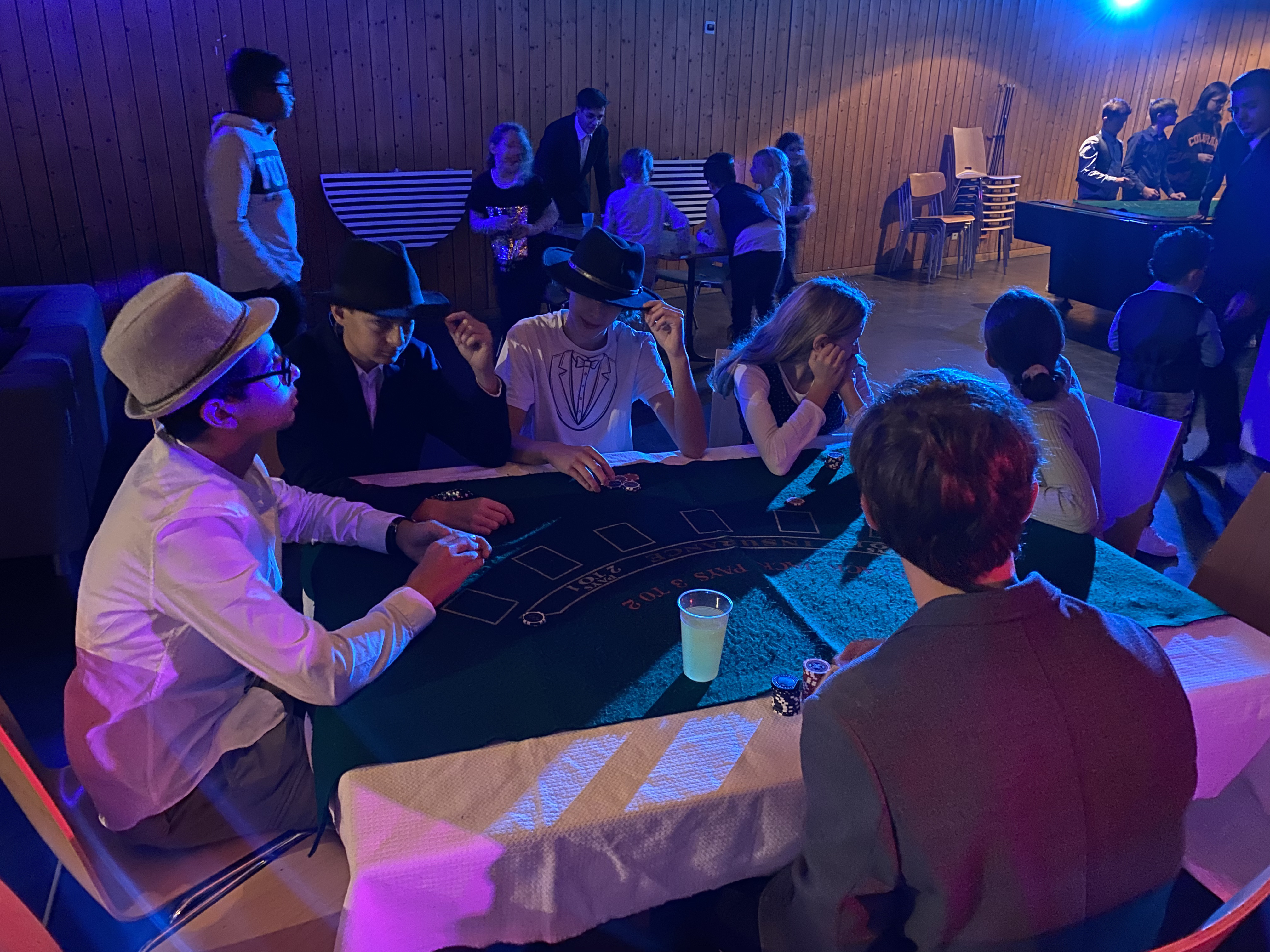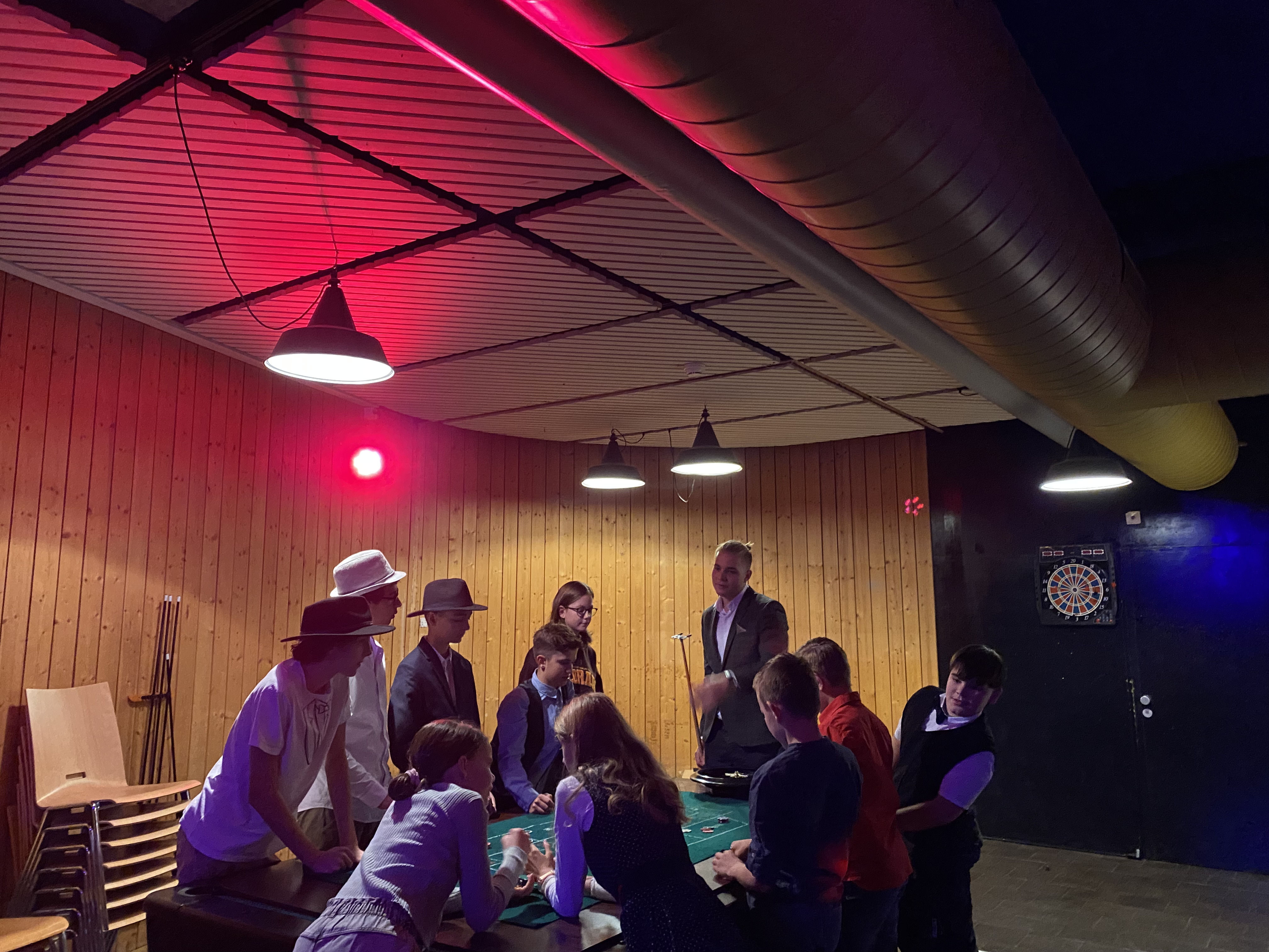 Am Samstag 05.11.2022 fand im Galluscheller das jährliche Chellercasino statt. Dieses Jahr wurden jedoch einige bislang durchgeführten Spielemöglichkeiten durch einfachere ersetzt, um den Anlass auch für unsere jüngeren Teilnehmenden attraktiver zu gestalten. Dies hinderte jedoch keinen daran, so zu wetten als hätte man bereits mehrere Jahre Casino Erfahrung. Während zwei Stunden konnten sich die Teilnehmenden zwischen 7 Posten frei bewegen, ob man also das grosse Geld am Blackjack oder Roulette Tisch gesucht, oder sich an der Bar mit einem feinen Getränk vergnügt, war komplett einem selbst überlassen. Zum Ende des Anlasses wurden dann die drei reichsten und die zwei am besten gekleideten Teilnehmende gekürt und mit einer Flasche Rimuss beschenkt.