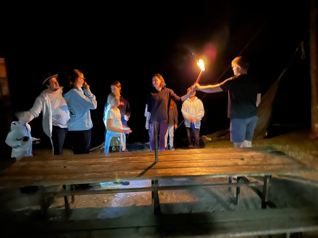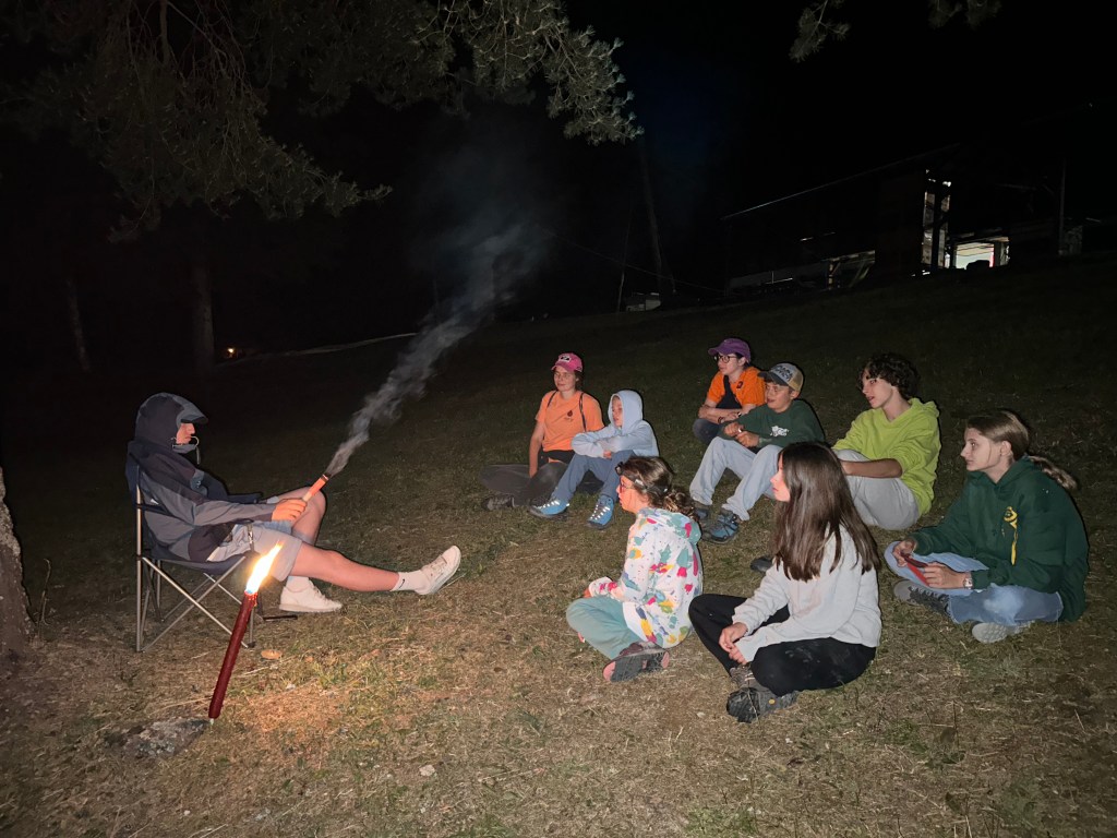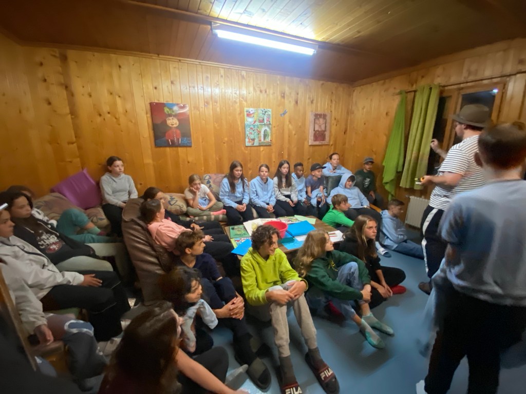 In der Nacht ging es dann für alle noch ganz unerwartet wieder aus dem Tiefschlaf. Das Geistli hat uns mittels Videobotschaft mitgeteilt, dass der böse Zauberer Tarabas momentan nicht achtsam ist und wir darum frei herumstöbern können. So haben wir von verschiedenen Fremden auf unserer Erkundung rund ums Lager erfahren, dass Tarabas nicht fair spielt und schon oft in Spielen oder Geschäften geschummelt hat. Glücklich und mit den neuen Erkenntnissen im Kopf sind die meisten nach der nächtlichen Aktivität innert Sekunden wieder in den Schlaf gefallen. Der morgige Tag steht schon bald in den Startlöchern.
