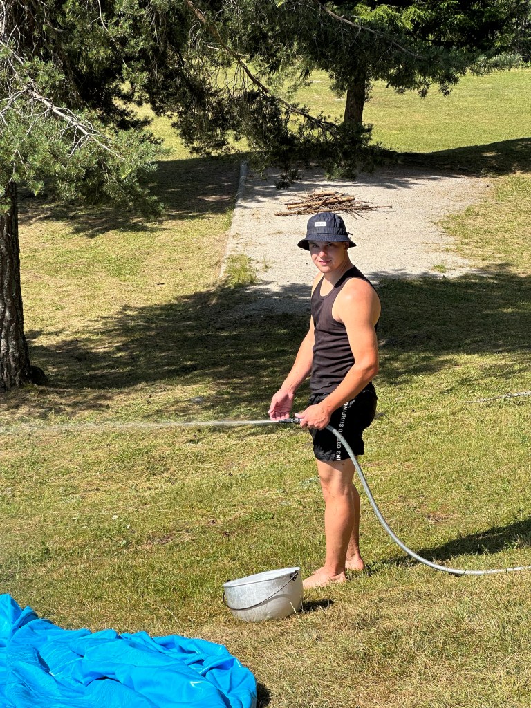 Nach den schlechten Nachrichten von gestern Abend, mussten wir heute morgen stark und mit viel Energie in den Tag starten. Dies gelingt am Besten mit einer intensiven Runde Morgensport. Das Programm war darauf ausgelegt, alle Muskelgruppen optimal zu stimulieren, um so den ganzen Körper zu stärken. Die Theorie hinter den gezeigten Übungen wurde währenddessen von den Leitenden erklärt. Nach dem Morgensport ging es direkt in die Badehose, weil heute die Namenstaufe anstand. Alle Teilnehmer haben sich Tapfer dem Blachentunnel, dem Barfussweg, der Wasserrutsche, dem Knobelrätsel und schlussendlich der Taufe im eiskalten Bachwasser gestellt. Die Freude zum Abschluss der Taufe war gross und alle wurden belohnt mit frisch grillierten Würsten und Maiskolben.