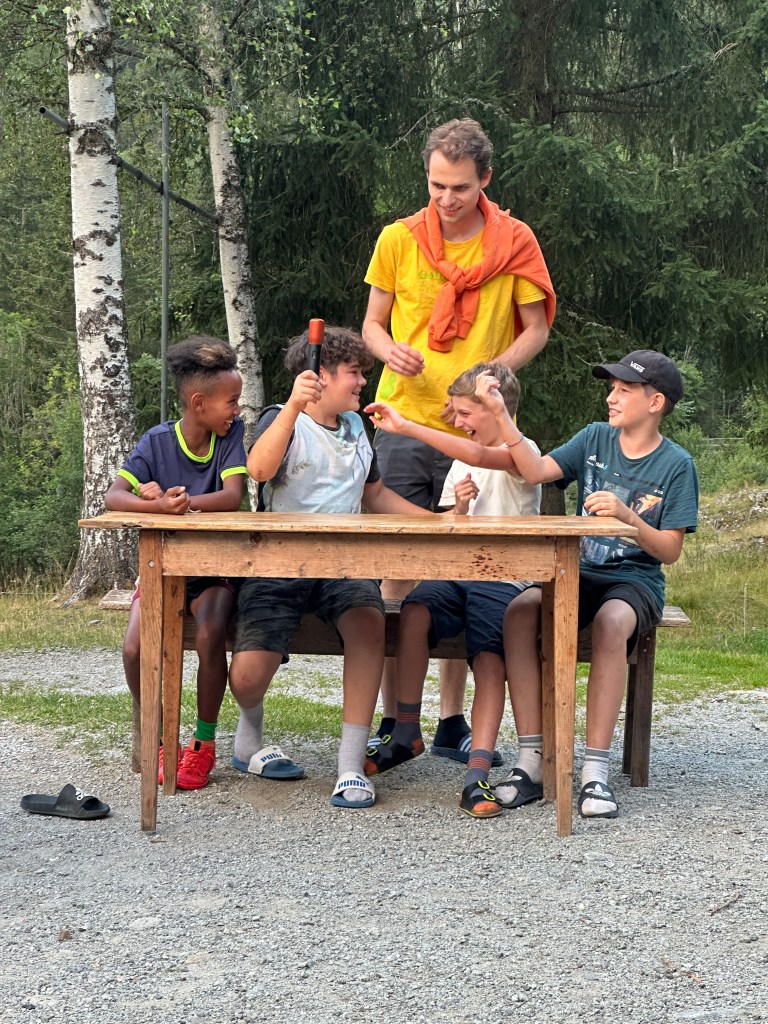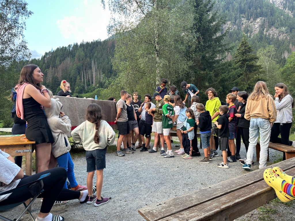 Ohje, Tarabas ist im Vorsprung auf unserem Spielfeld. Mit der Aufgabe „In der Wildnis überleben“ haben wir die Chance acht Felder vorzurücken. Ganz nebenbei ist das unsere Chance die Kartenteile zum Geheimversteck von Tarabas zu finden. Die Nacht auf Mittwoch hat also jede Gruppe auf einem individuellen Abenteuer verbracht. Es wurde dem Gewitter getrotzt, Ravioli gewärmt und schweres Gepäck getragen. Durch die Adleraugen der Kinder konnten auf dem Weg die Kartenteile gefunden werden. Diese wurden gemeinsam zusammengesetzt und das Geheimversteck von Tarabas geplündert.