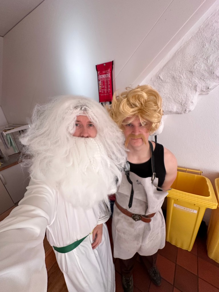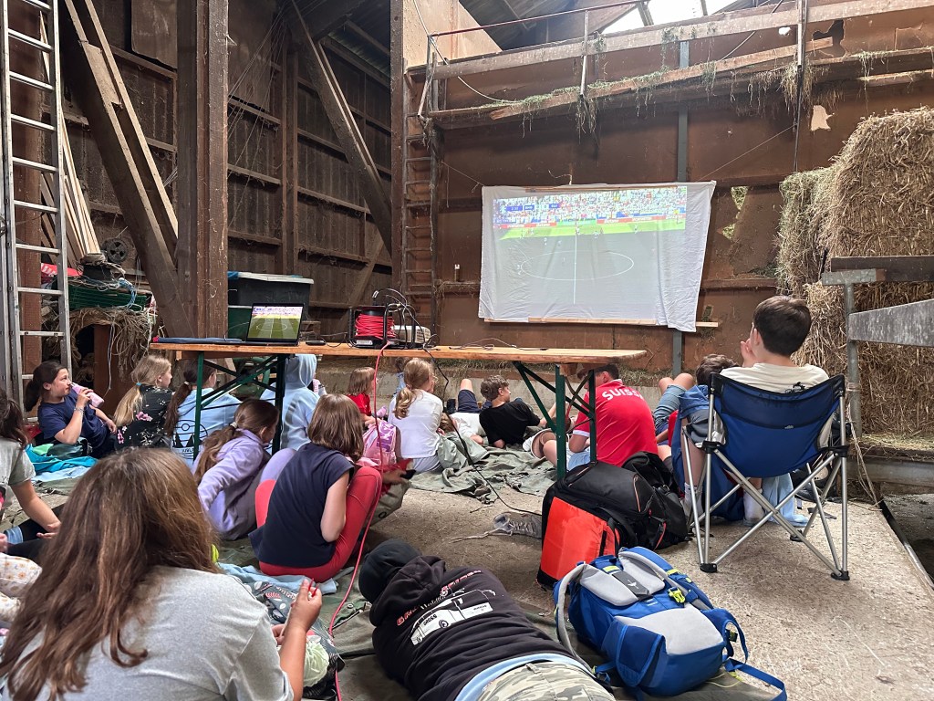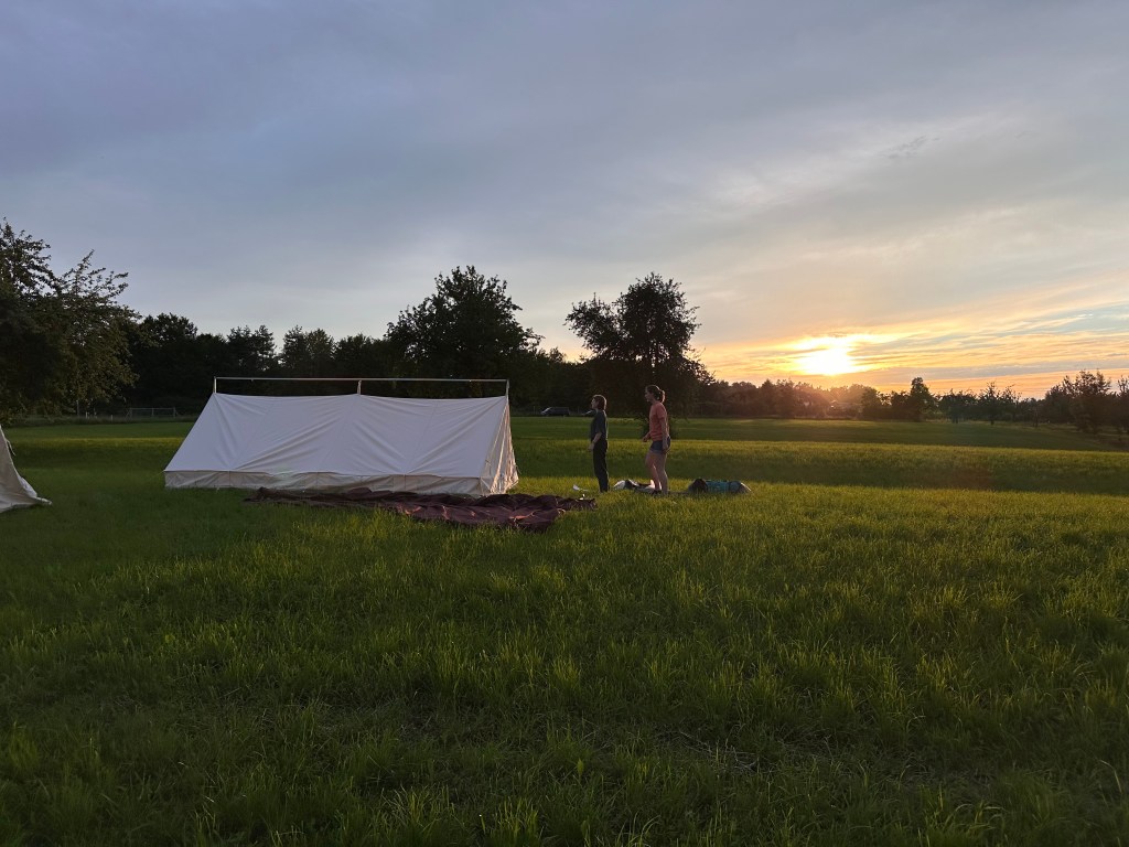 Der erste Tag des Mini-Sola 2024 ist auch schon wieder Geschichte. Am Morgen wurden wir von Galliern und Gallierinnen begrüsst und haben uns dann zu Fuss und mit dem Velo auf den Weg ins gallische Dorf gemacht. Wir haben Unterstände gebaut, Zelter aufgestellt und alles wind- und wetterfest gemacht, denn am Nachmittag zogen dunkle Wolken auf. Die Zelte haben die erste nasse Bewährungsprobe bestanden und wir haben einen vergnügten Nachmittag verbracht. Am Abend veranstaltete das Gallische Dorf ein Public Viewing und wir feuerten lautstark die Schweizer Mannschaft an.