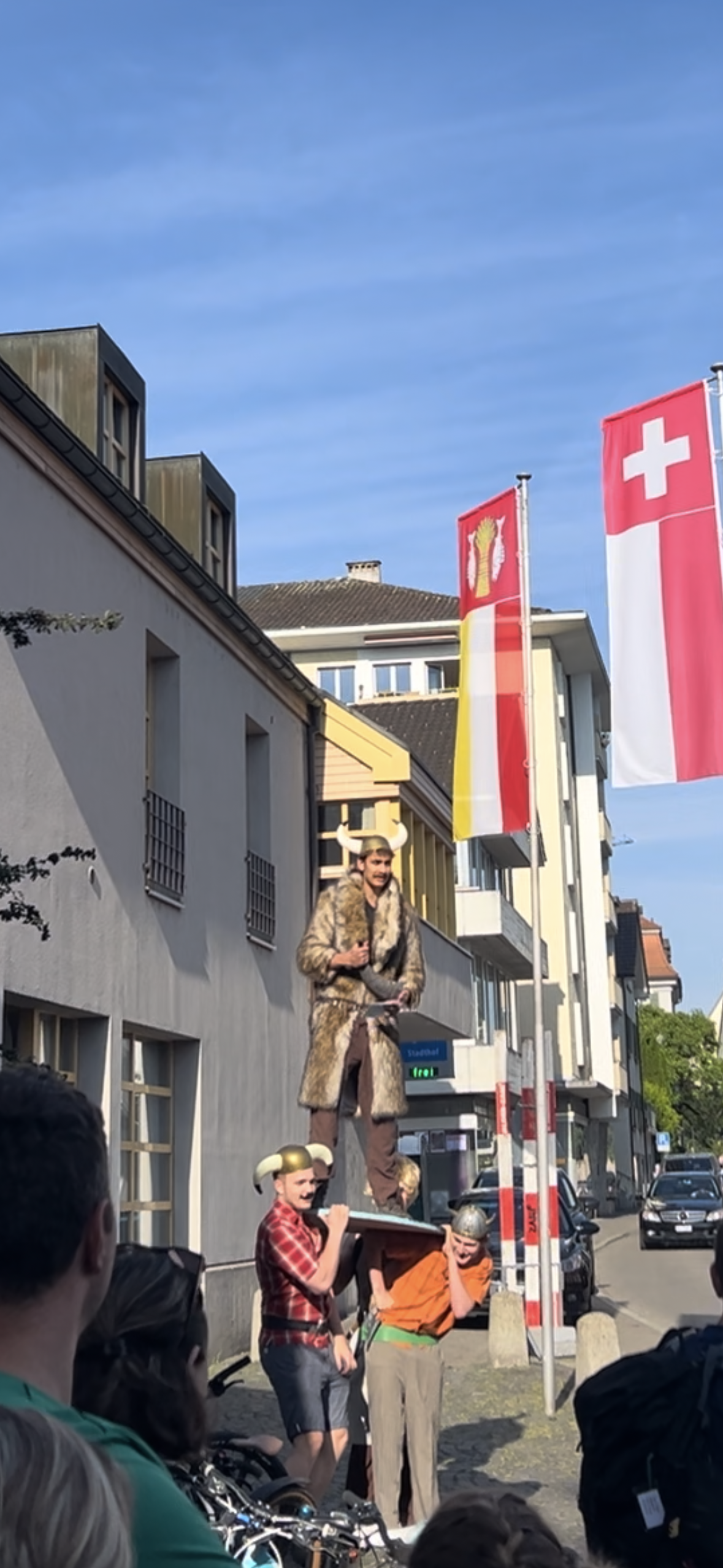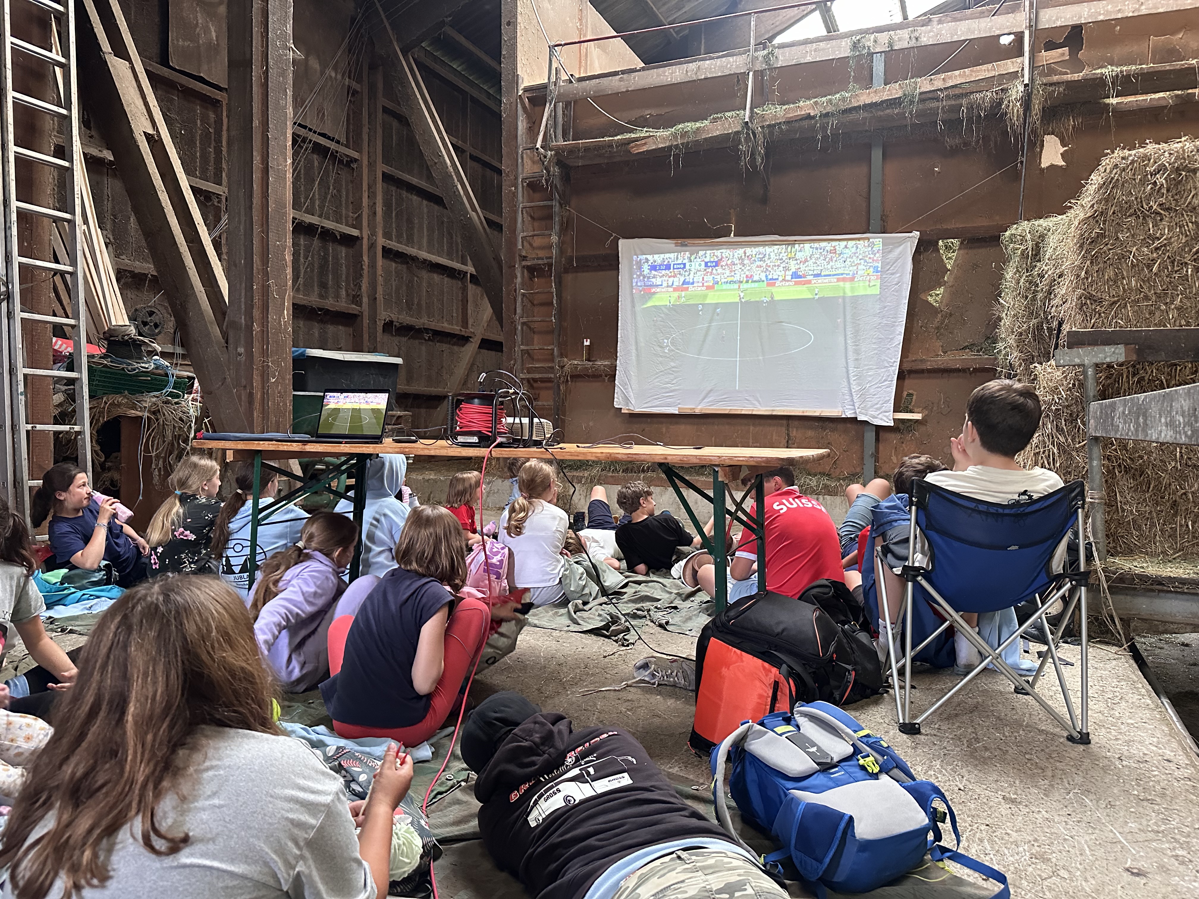 Der erste Tag des Mini-Sola 2024 ist auch schon wieder Geschichte. Am Morgen wurden wir von Galliern und Gallierinnen begrüsst und haben uns dann zu Fuss und mit dem Velo auf den Weg ins gallische Dorf gemacht. Wir haben Unterstände gebaut, Zelter aufgestellt und alles wind- und wetterfest gemacht, denn am Nachmittag zogen dunkle Wolken auf. Die Zelte haben die erste nasse Bewährungsprobe bestanden und wir haben einen vergnügten Nachmittag verbracht. Am Abend veranstaltete das Gallische Dorf ein Public Viewing und wir feuerten lautstark die Schweizer Mannschaft an.
