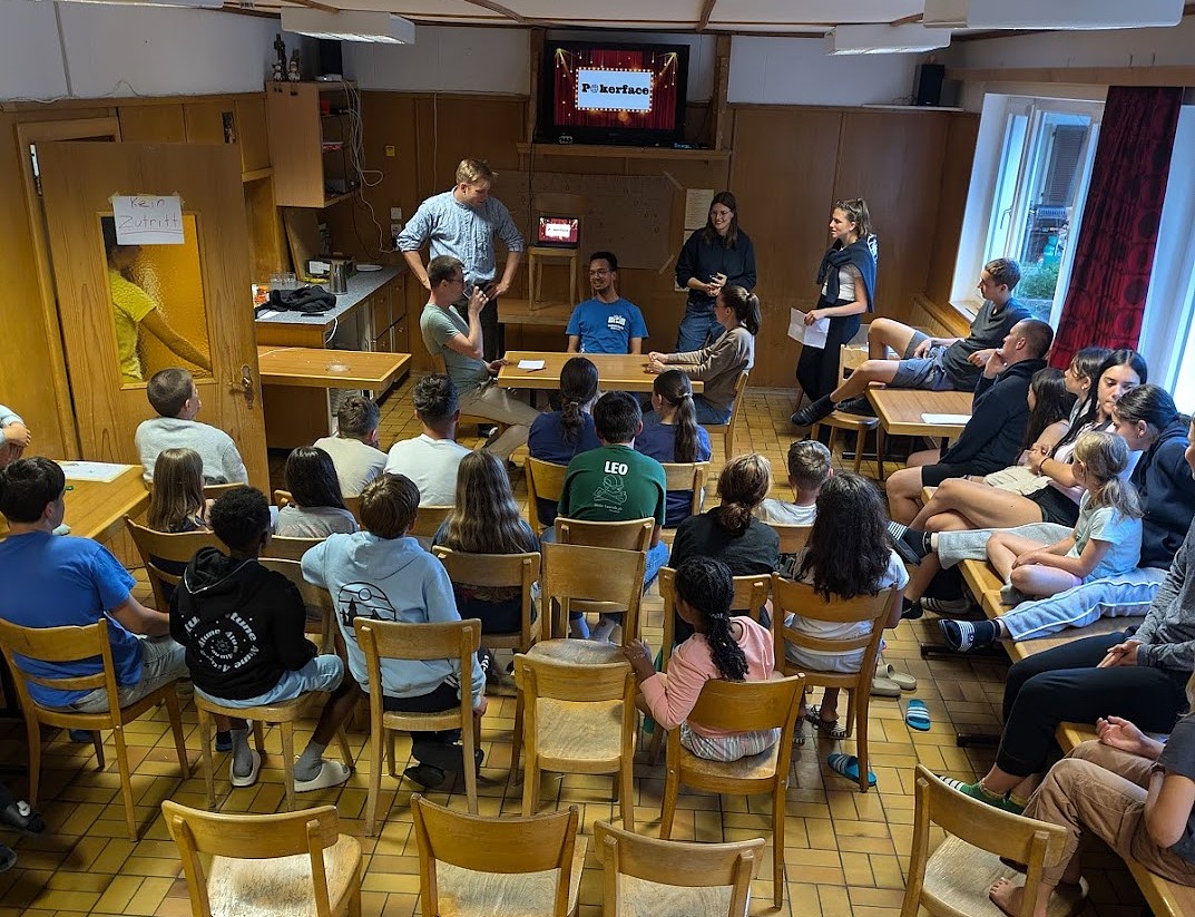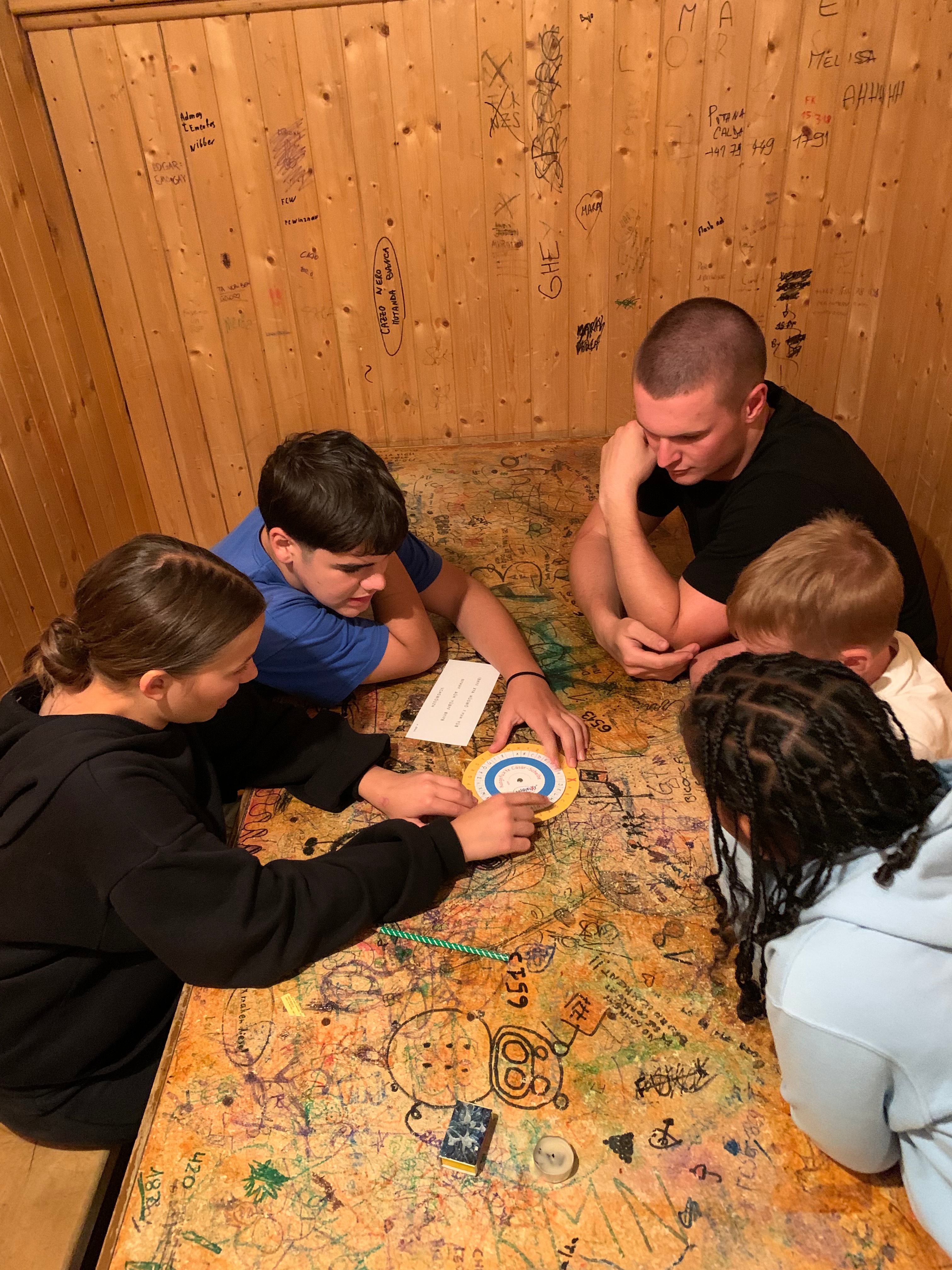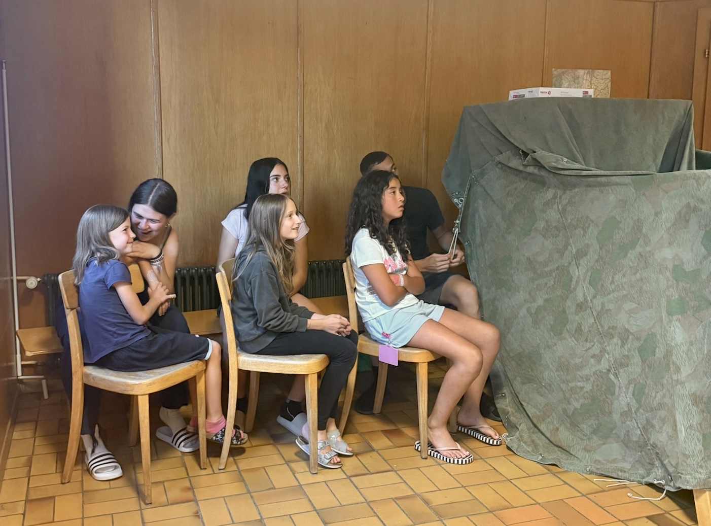 Nach einem feinen Mittagessen ging es mit der Detektivausbildung weiter. Das Ziel ist es, die Kinder fit für das Lösen des Falls zu machen. Sie konnten einen Detektivausweis basteln und lernten Fingerabdrücke zu nehmen. Weiter entschlüsselten Sie verschiedene Geheimschriften wie das Freimaurer-Alphabet oder die Cäsar-Verschlüsselung. In einer Schatzsuche lernten die Kinder eine Karte zu lesen und auf Hinweise zu achten. Zudem lernten sie anhand eines Rollenspiels, mit welchen Fragen man einen Täter ausfindig machen kann. Die Kinder haben ihr Bestes gegeben, die Kommissarin Fizz Blitz und Detektivin Törtel waren jedoch noch nicht mit allen Leistungen zufrieden, weshalb es am Donnerstag mit der Ausbildung weitergeht.