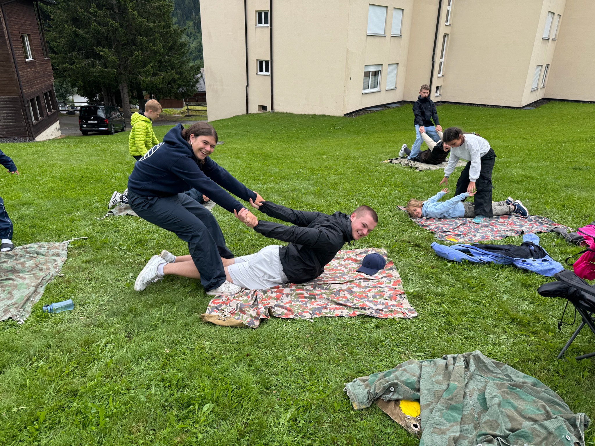 Heute sind wir sehr entspannt mit Yoga, dem Herstellen einer Heilsalbe und einer Lektion in Kräuterkunde in den Tag gestartet. Nach diesem Einstieg waren wir mehr als bereit am Nachmittag bei den Wasser-Games anzutreten. In einem Postenlauf, mit verschiedenen Disziplinen wie Wasserballonboccia sind wir in Gruppen gegeneinander angetreten. Abgerundet wurde der Tag mit einem leckeren Kartoffelgratin. Moderatorin Livia und Nova haben am Abend mit uns Radiospiele gespielt und von Schwingbesen Verstecken, Schönheitswettbewerb und „Wer hat das sauberste Zimmer?“ war alles dabei. Doch mitten im Spiel wurden wir in unserem Lagerhaus von zwei geheimnisvollen Gestalten überrumpelt in Anzügen und Sonnenbrillen. Sie haben alle Zimmer durchsucht und sind dann plötzlich wieder verschwunden. Das Highlight des Tages war es war es, all die lieben Elternwünsche anzuhören.