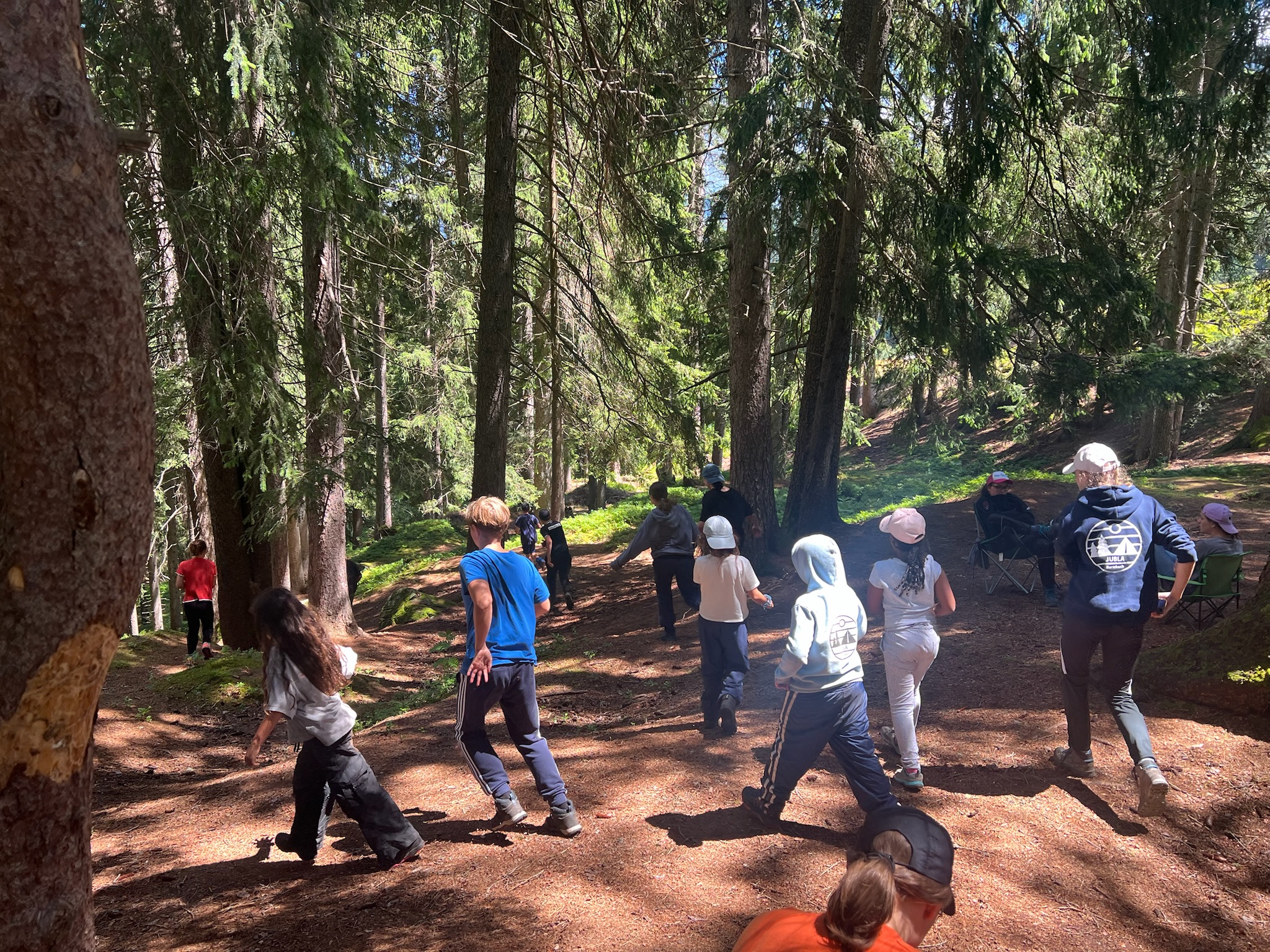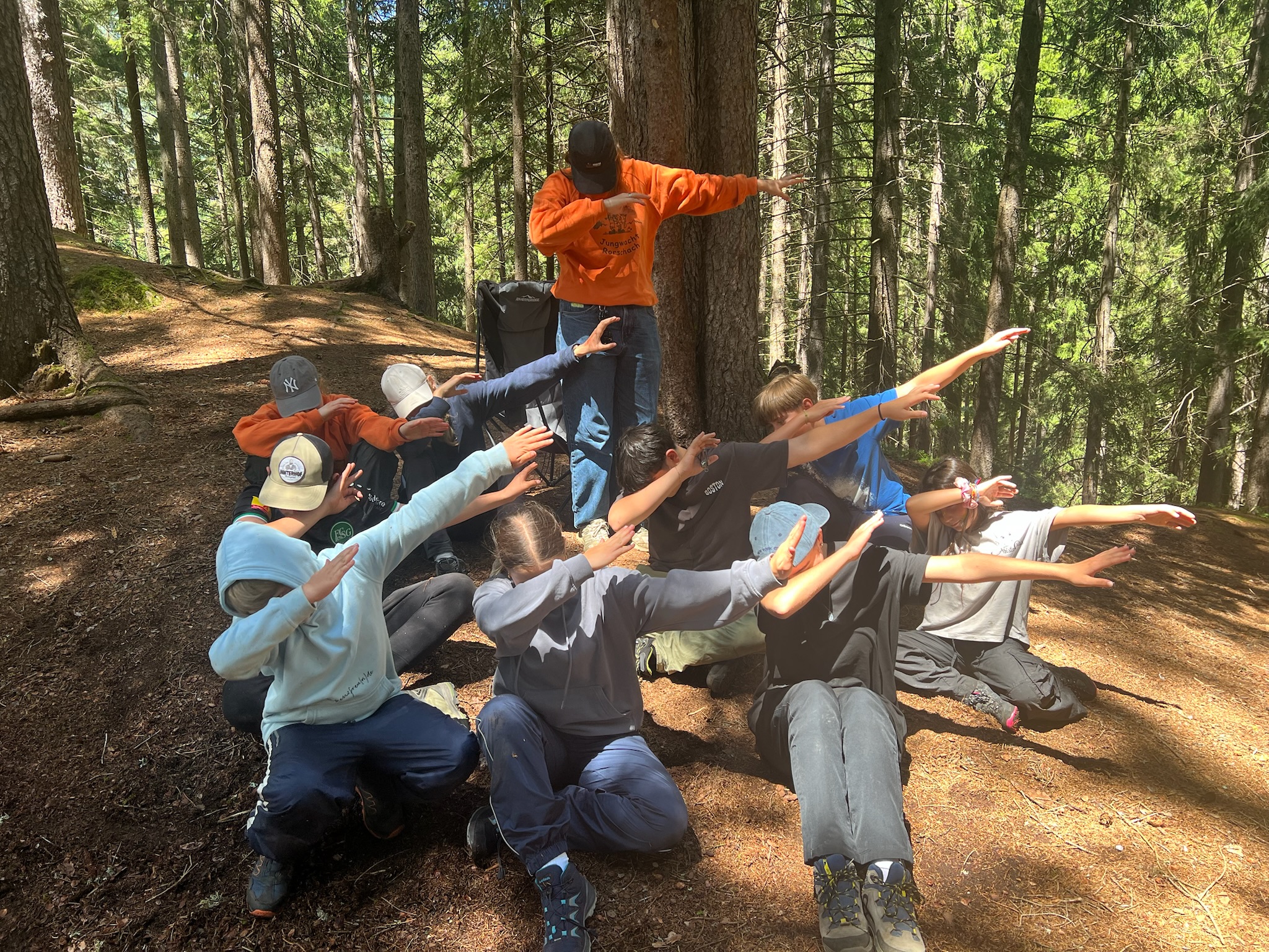 Am Vormittag wartete ein spannendes Geländespiel im Wald auf die Kinder. Ziel war es, Zutaten für das Mittagessen zu sammeln – ein echtes Abenteuer! Mit viel Einsatz und Teamgeist erkämpften sich die Gruppen alles Nötige, um anschließend ihre eigene Spaghettisauce zuzubereiten. Das gemeinsame Kochen war ein voller Erfolg. Jede Gruppe brachte ihre ganz persönliche Note ein.