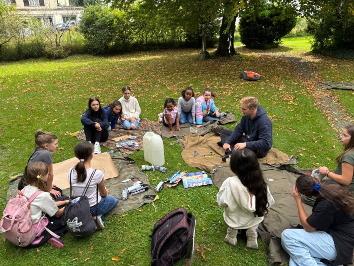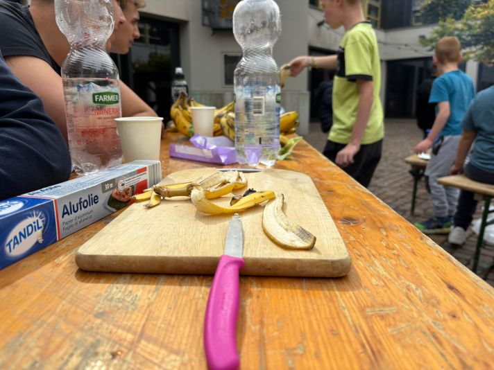 Besonders lebendig wurde es im Park, wo verschiedene Fang- und Versteckspiele gespielt wurden. Auf der Wiese folgte dann der Start der Buthan-Rakete, der für Spannung und Staunen sorgte. Zum Abschluss stellten die Gruppen ihre zuvor gestalteten Poster vor, bevor zur Verabschiedung ein letztes Hosensack-Spiel gespielt wurde.